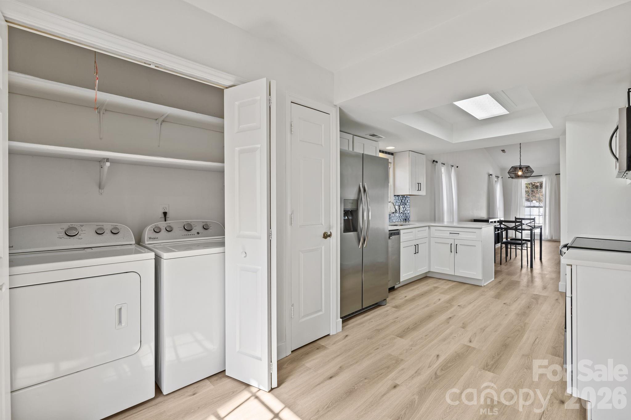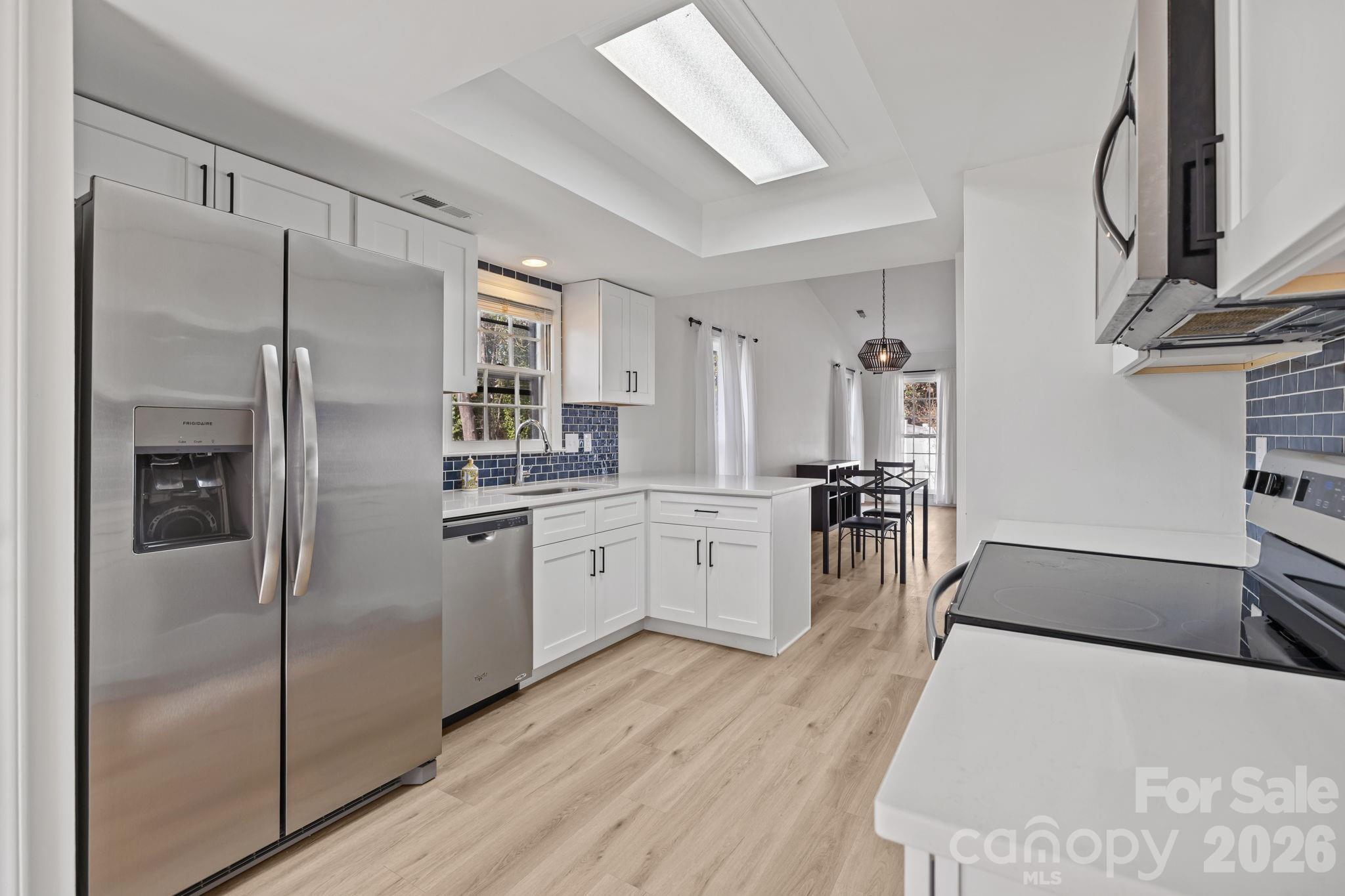 The kitchen shines with a new refrigerator, stove, and microwave—and yes, the refrigerator, washer, and dryer all convey! For sale as-is!