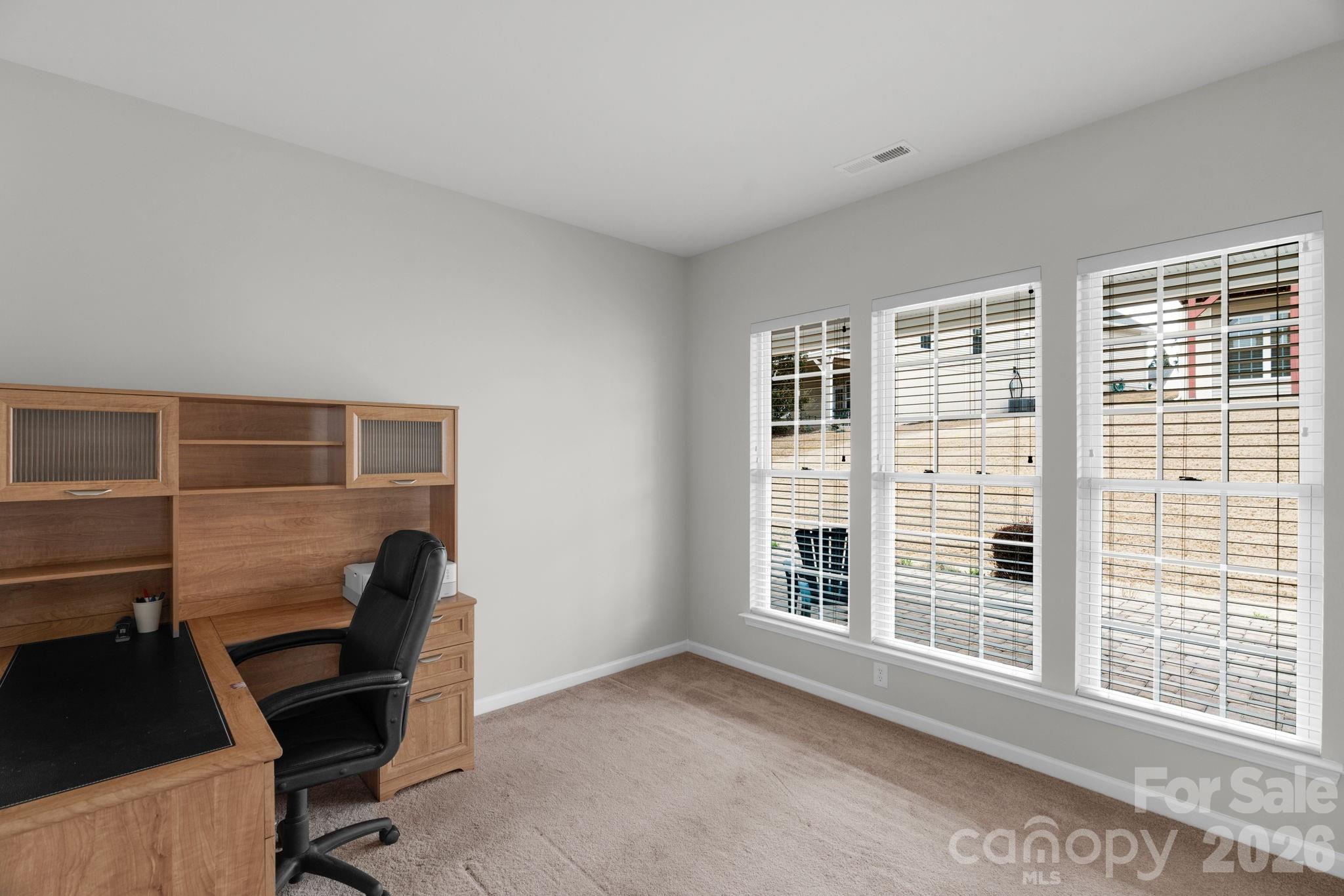 Freshly painted and move-in ready, this Surrey Crest floor plan offers an inviting open layout on a quiet cul-de-sac lot. The main level features 2 bedrooms plus an office, a bright sunroom, and a spacious kitchen with extra cabinetry. Upstairs you’ll find a large bonus room, third bedroom, full bath, walk-in closet, and walk-in attic storage. Recent updates include a new roof, new windows, and new water heater.