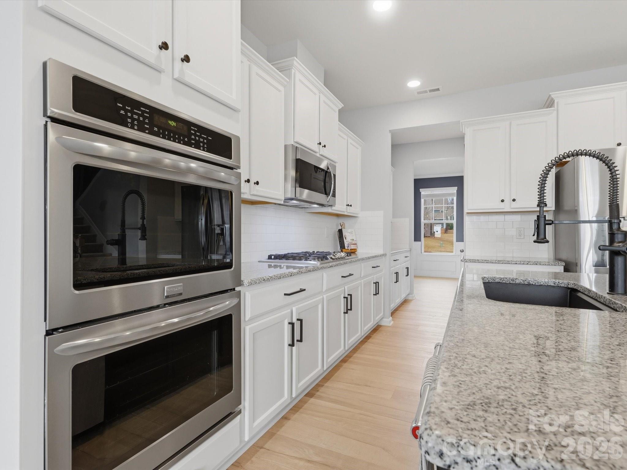 Beautiful open concept Fieldcrest floorplan with brand new LVP flooring throughout the entire main level. The gourmet chef’s kitchen features a large island, gas cooktop, double wall ovens, tile backsplash, spacious pantry and a separate butler’s pantry. The main level flows easily with a spacious great room, dining area and private home office, creating a layout that works well for both everyday living and entertaining.