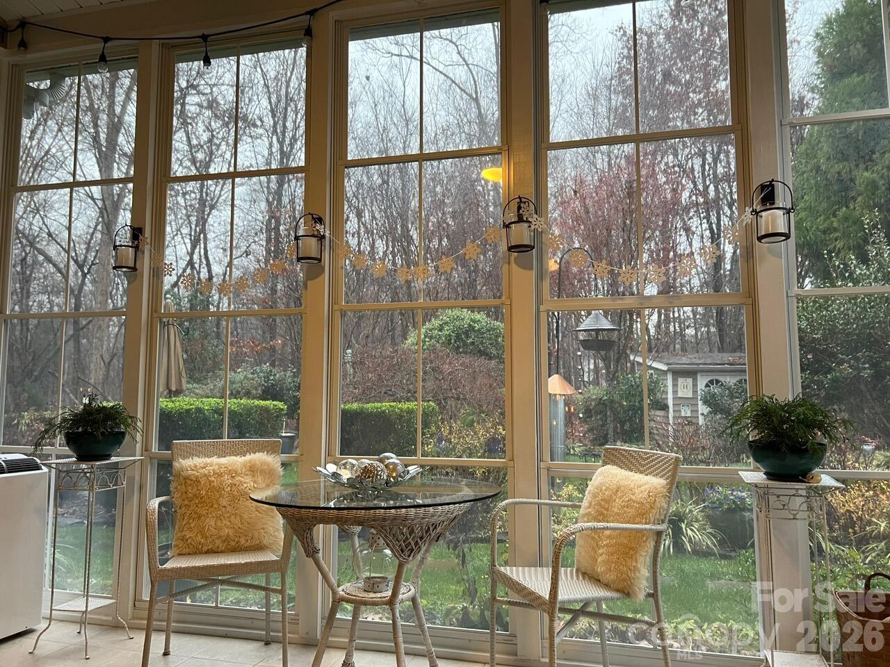 Beautiful home in the welcoming Callonwood Neighborhood with ample space and an ideal layout. Open floor plan with natural light, features a gas fireplace, a breakfast area with a bay window, and a functional kitchen with an extended sitting island. A sliding door leads to a 3-season sunroom (new 2023) with a portable heat pump, patio, and delightful private backyard designed by a master gardener. Three spacious bedrooms, two full baths, and an office on the main level. Full bath and large recreation/bedroom upstairs. Large 2-car garage with refrigerator, shelves and attic storage. Walking distance to ballfield, dog park, playground, clubhouse, nature trails and neighborhood pool. Minutes from charming downtown Matthews and convenient commuter routes.