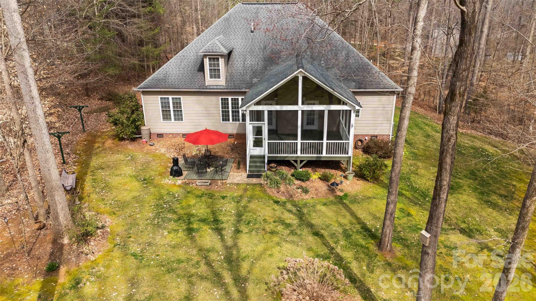 wooded backyard just minutes from Lake Wylie and located in