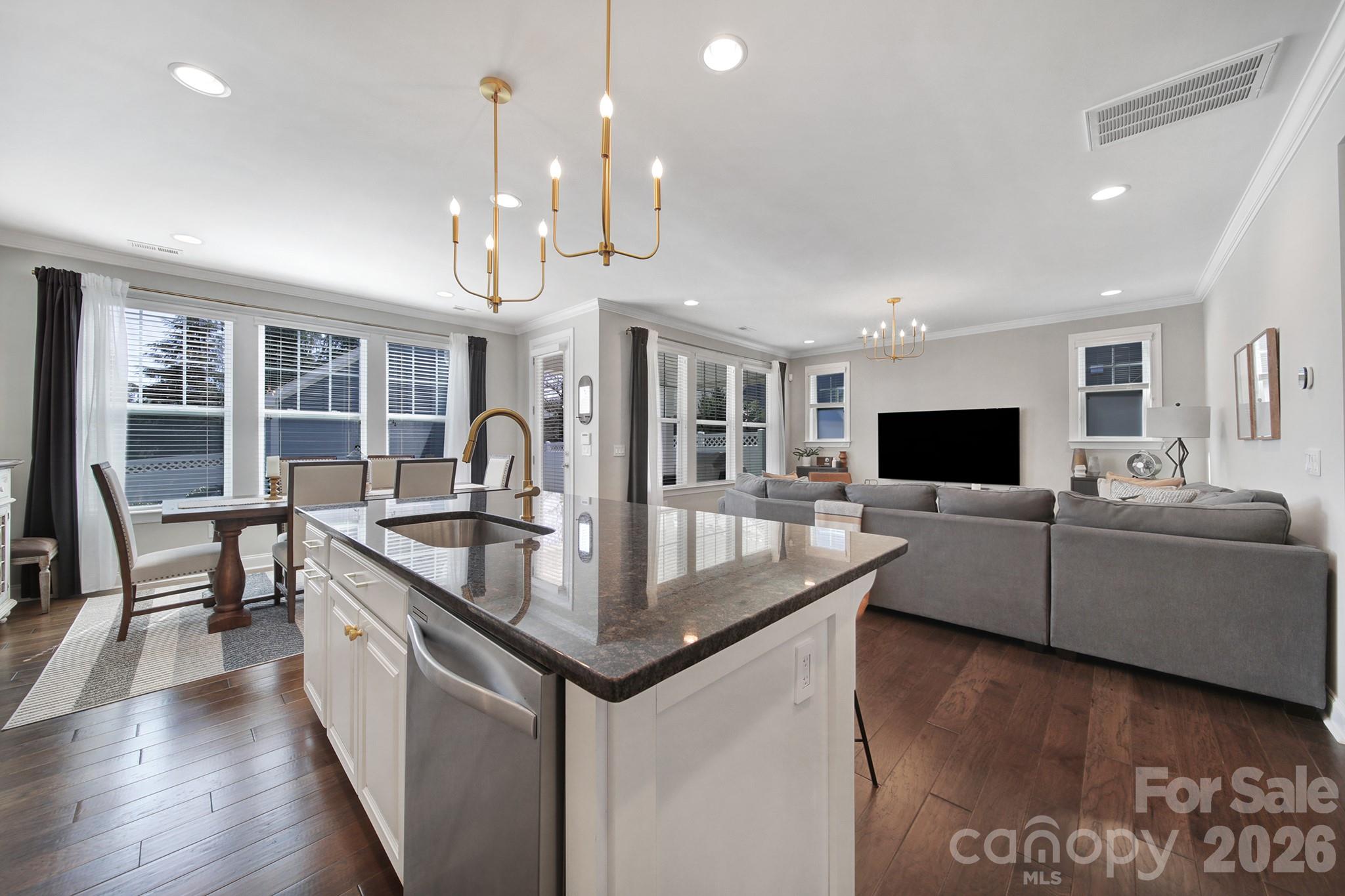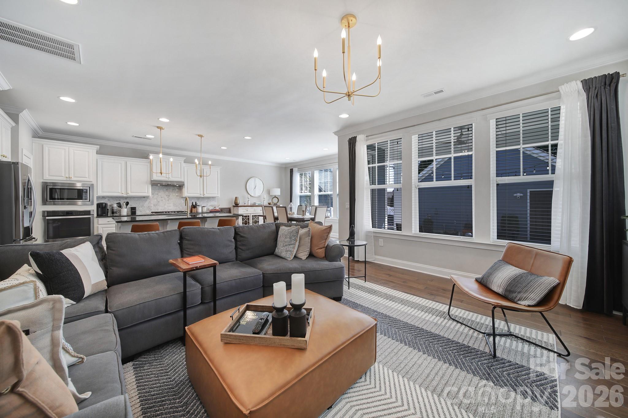 Blending modern luxury with thoughtful functionality, this pristine home offers an open-concept layout designed for both everyday living and effortless entertaining. The stunning kitchen features sleek countertops, a large center island, and seamless flow into the light-filled dining and living areas—creating the perfect gathering space for family and friends.