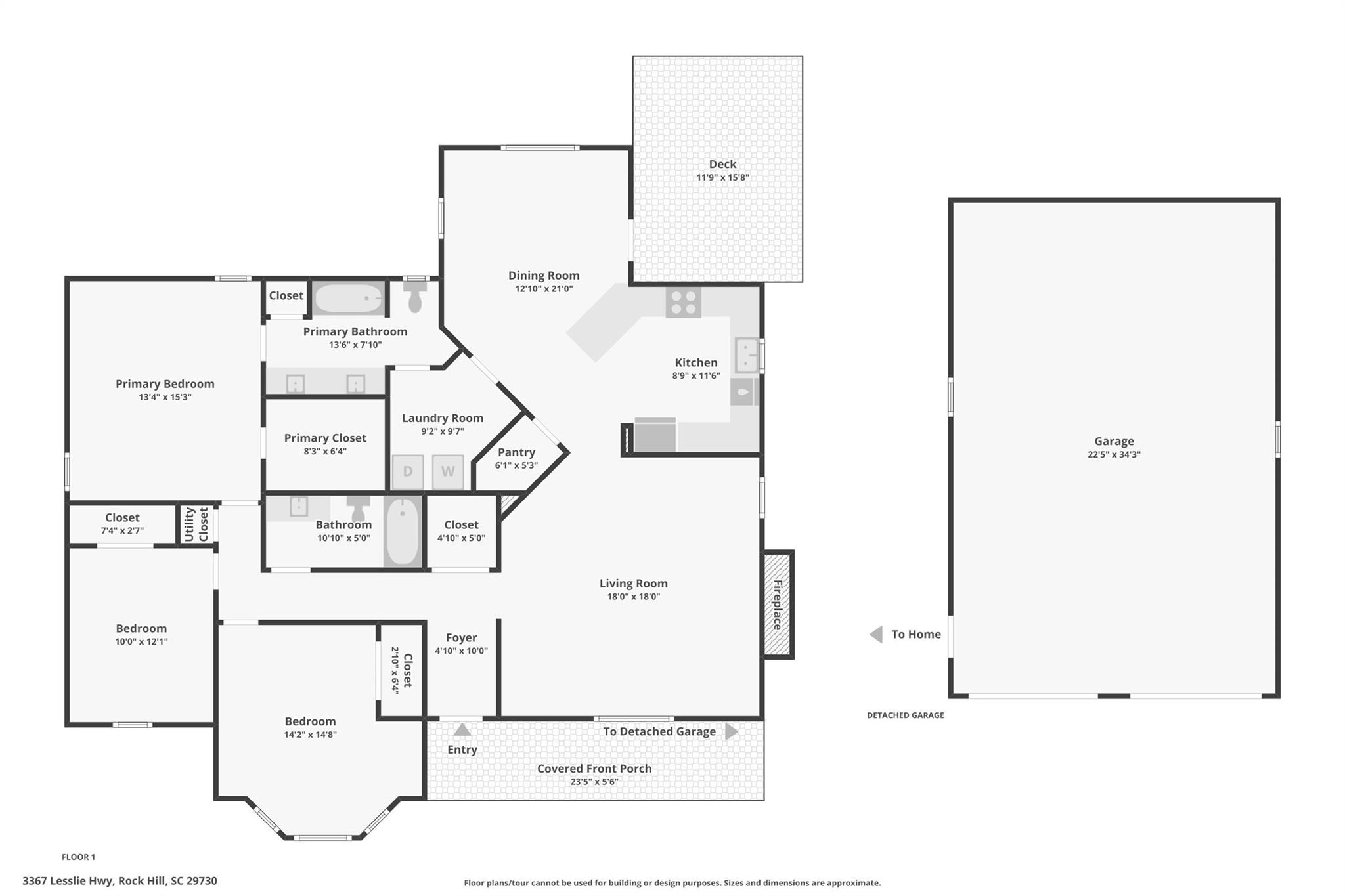 This brick ranch home sits on an acre lot with an oversized detached garage. Out in the country, but not far from town, this is one of the rare properties in Rock Hill that is USDA Eligible! Features include a wood-burning fireplace in the living room, gas range in the kitchen, a spacious dining area, breakfast bar, walk-in pantry, and large laundry room. The owner's suite is also connected to the laundry room for added convenience!