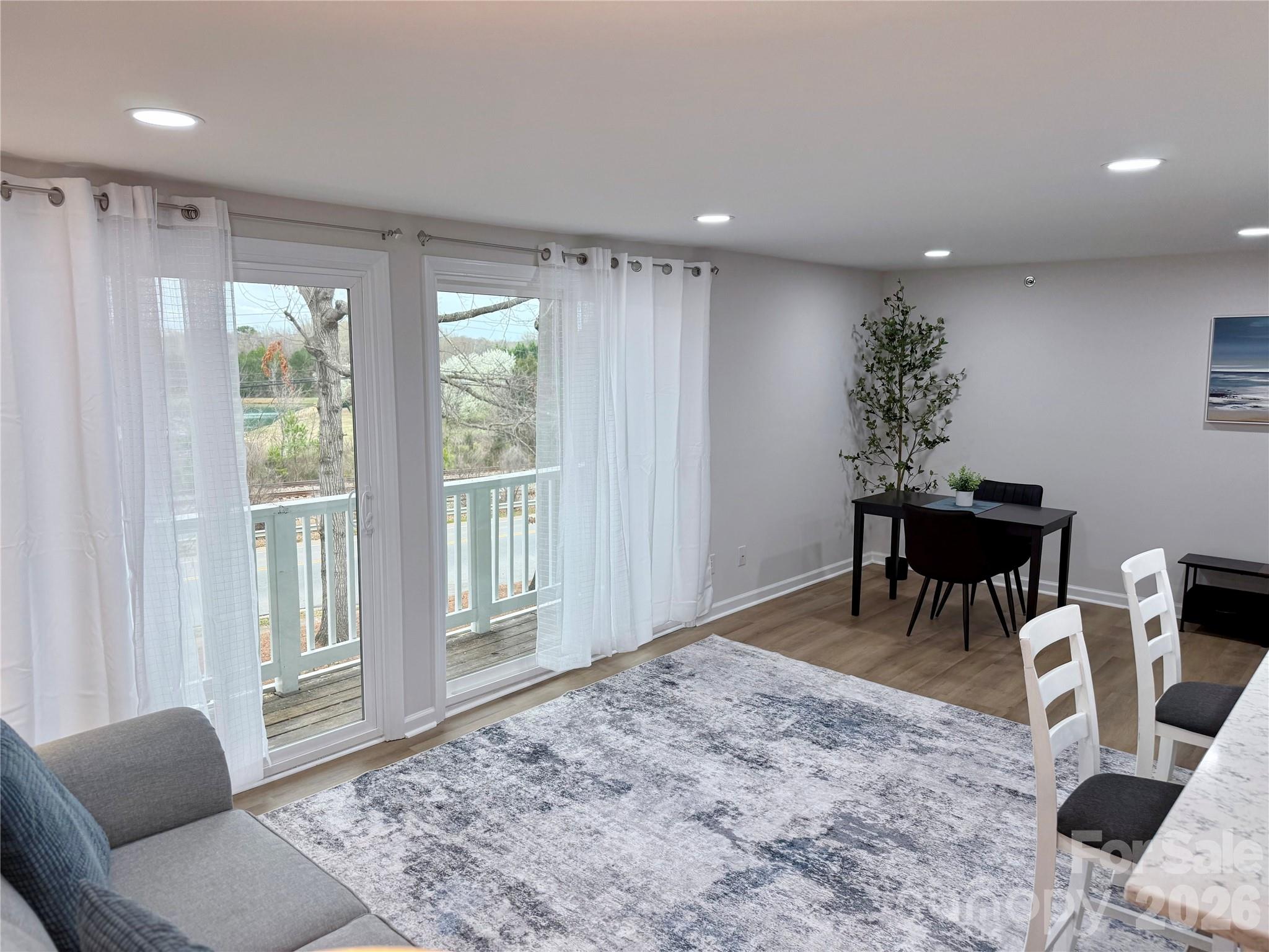 High-end finishes and refined luxury with no expense spared! This roomy all-new three-bedroom condo, which has been fully renovated, exhibits sophisticated design and upscale finishes. Offering a turnkey opportunity for its next owner, with fresh paint, luxury vinyl flooring and updated lighting throughout giving it a fresh modern appeal. The open, airy floor plan is perfect for entertaining and offers a seamless flow between the living, dining, and kitchen areas. The kitchen includes stunning quartz countertops, new white shaker soft close cabinets, subway tile backsplash, and brand-new stainless steel Whirlpool appliances. Two large sliding glass doors leading to a balcony bring in tons of natural light. Additional enhancements to note include all new windows, window blinds, HVAC system replaced in 2026, and new stackable washer and dryer included. The two full bathrooms have been remodeled with new shower tiles, bathtub, mirrors and vanities. Premium location, located in the University area, convenient to UNCC, Concord Mills, IKEA Boulevard, many shopping and dining options, and offers easy access to highways, public transit and the Blue Line.