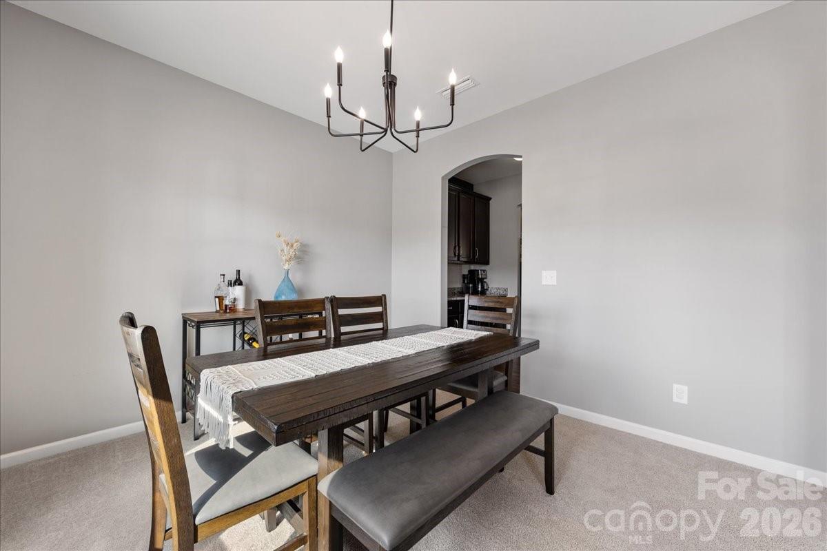 Welcome to this beautifully appointed 3-bedroom, 2.5-bathroom home offering almost 2,700 SQ FT of thoughtfully designed living space in the popular Sutters Mill community of Troutman! Nestled across from a community green space with a covered front porch to take it all in, this move-in ready home impresses from the moment you arrive. Inside, arched doorways & neutral tones with tasteful pops of color set a warm, inviting tone. The kitchen is a true centerpiece — featuring granite countertops, SS appliances, rich warm cabinetry, & an oversized island perfect for gathering & a charcuterie board. A formal dining room with butler's pantry, a spacious great room, & a flexible main-level bonus room for an office, gym, or additional place to sleep round out the main floor. Upstairs, a large loft, 2 secondary bedrooms, & a beautiful primary suite with sitting area, recessed lighting, walk-in closet, double vanity, & glass-door shower offer the perfect retreat after a long day. Step outside to your screened porch & patio overlooking serene wooded views, with a fully-fenced backyard & paver sitting area made for cool Carolina evenings by the fire pit. Community amenities include walking trails, a community garden, & RV/boat parking. Perfectly positioned between Statesville and Mooresville with easy access to I-77 (3 miles), Downtown Troutman (4.9 miles), Daveste Vineyards (6.8 miles), & Lake Norman State Park (8.7 miles). Come experience it for yourself!