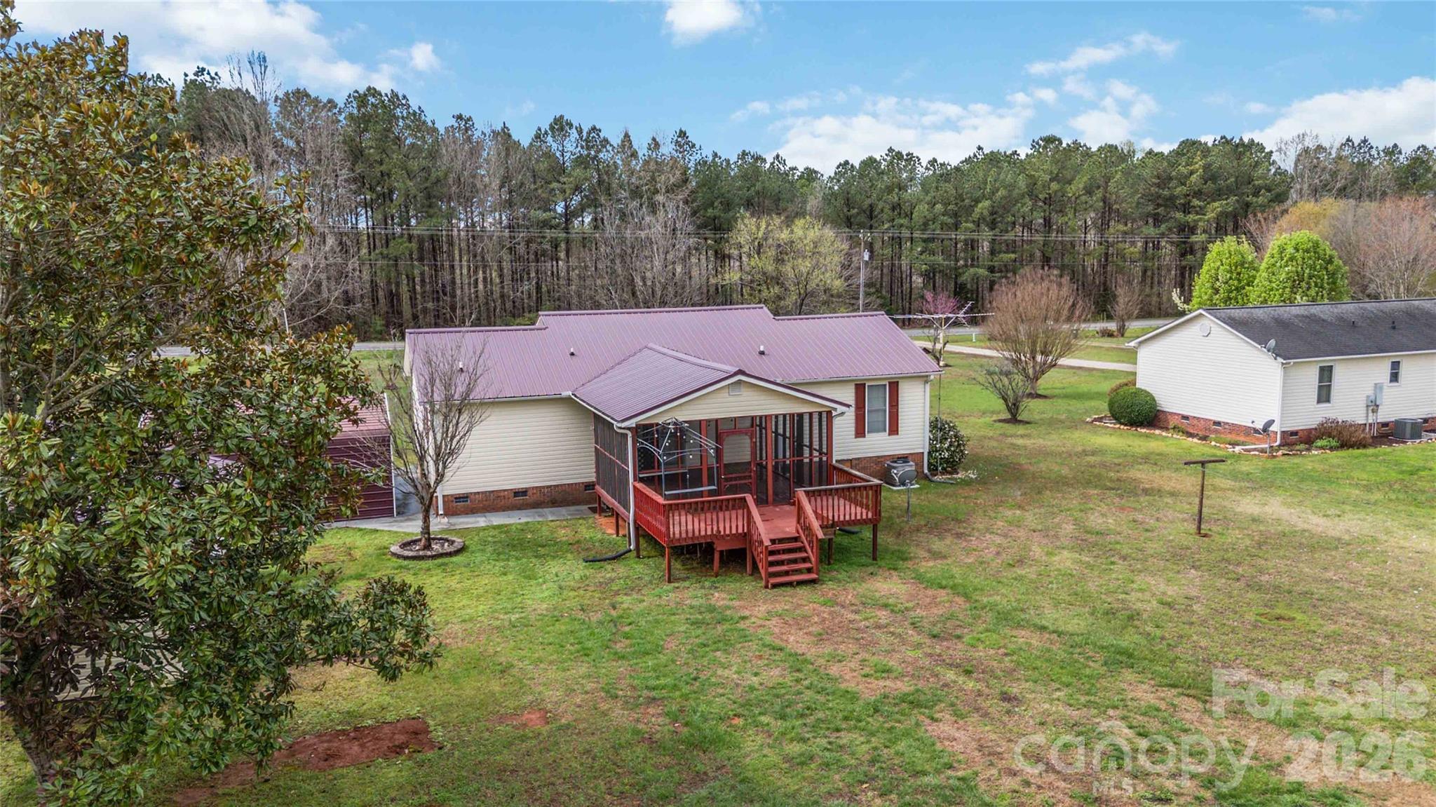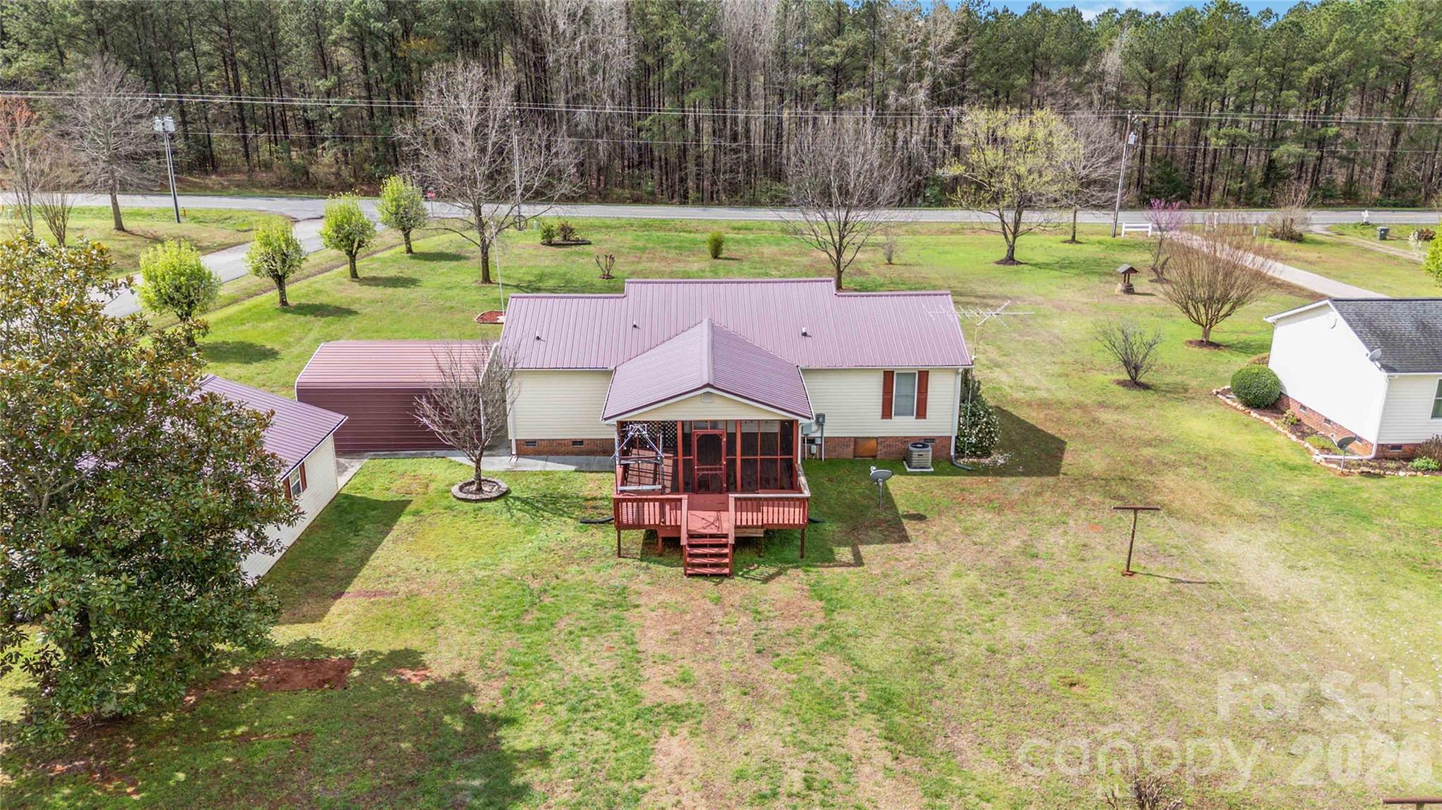 welcoming rocking chair front porch. Situated on a level corner lot with a beautifully manicured yard, this property offers space, comfort, and functionality. Enjoy outdoor living with a screened back porch and deck overlooking the spacious yard. Additional features include a metal roof, a two-car carport, a detached one-car garage, a workshop, and a storage building, ideal for hobbies, storage, or extra workspace. Plenty of room for outdoor activities while still being convenient to York, McConnells, and Rock Hill for shopping, dining, and commuting. A wonderful opportunity to enjoy country living with modern conveniences nearby.
