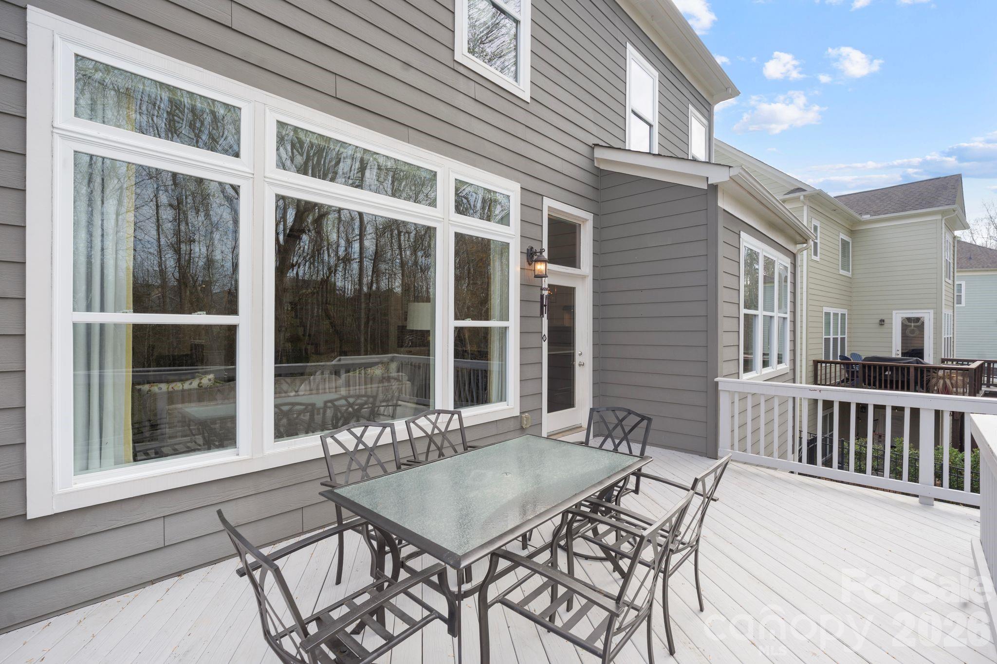 Outdoor living is just as inviting with a spacious deck, patio area, and fire pit overlooking a private backyard with serene nature views.