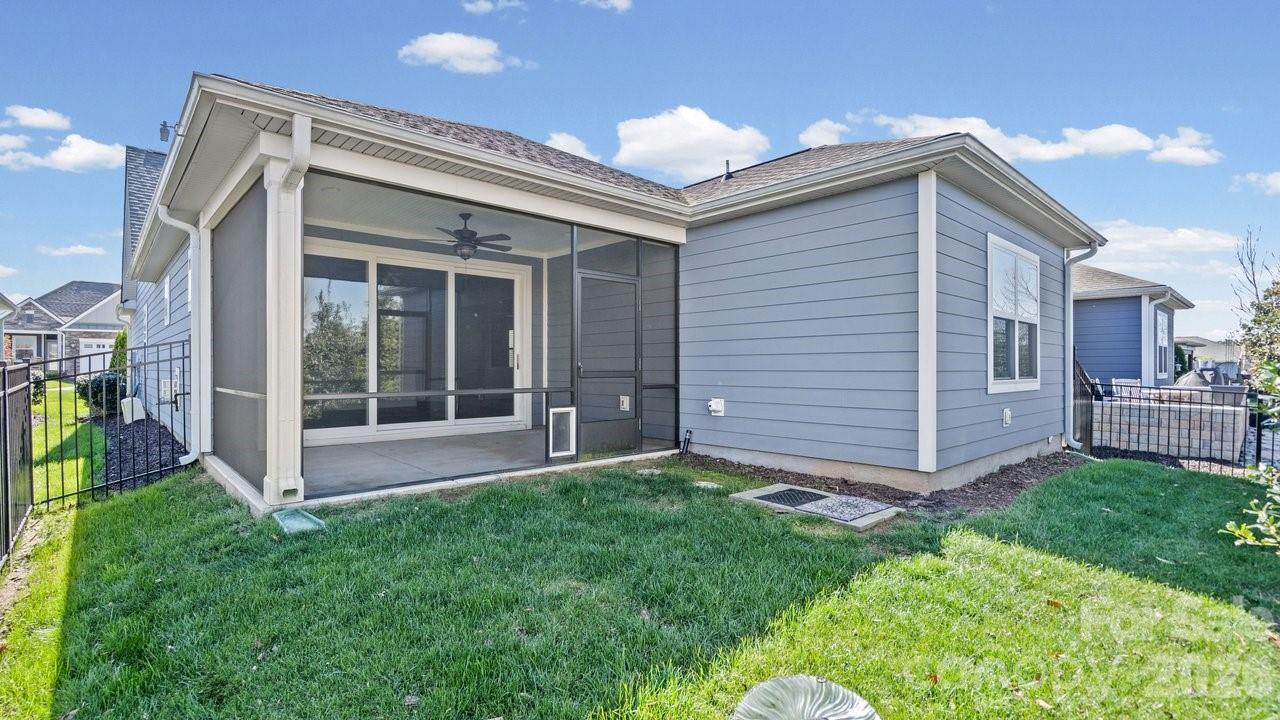 Open-concept Glory plan on an exceptional lot with long range views. Split 2BR, 2B open concept plan features a customizable multiuse flex space. The well-appointed kitchen anchors the main living area and includes SS appliances, gas range, farm sink, solid surface countertops, pendant lighting, light craftsman style cabinetry w/soft close drawers, tile back splash and island serving bar. Adjoining great room is highlighted with a gas log fireplace and wall of glass that opens to a peaceful screened lanai and well landscaped fenced rear yard that extends in and outdoor entertaining options. A serene master suite completes this home & ensuite bath with dual sink vanity, tile floor and a generous walk-in closet & tiled shower with grab bars for safety. Plantation shutters, low maintenance wood and tile flooring (no carpet) and a large laundry room with additional counter space and cabinet. Attached 2 Car garage for additional storage options for all those things you just couldn't part with. Trilogy Membership includes Freedom Boat Club on Lake Norman plus award winning amenities