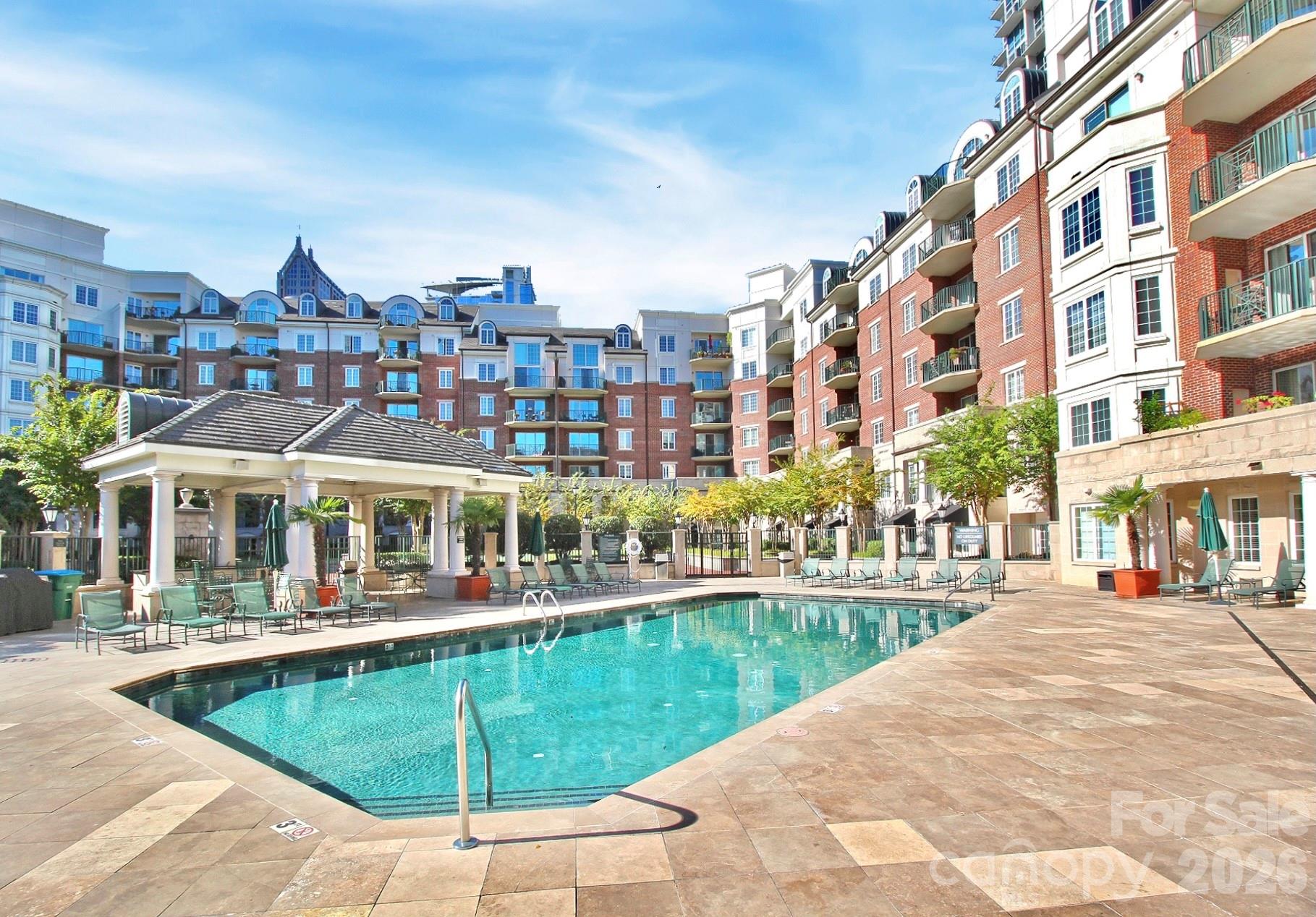 Resort-style living with full-service amenities: 24-hour concierge, award-winning on-site HOA management, a resort pool with outdoor kitchen, a professionally landscaped gated courtyard with putting green, fountain, and dog park, a state-of-the-art fitness center, cozy library with fireplace, fireside terrace with grills and TV, media room, cyber café, coffee bar, and even a resident car wash. Conveniences like Harris Teeter, a nail salon, and dry cleaners. The fifth and poplar community offers an active social calendar including book club, happy hours, and more.