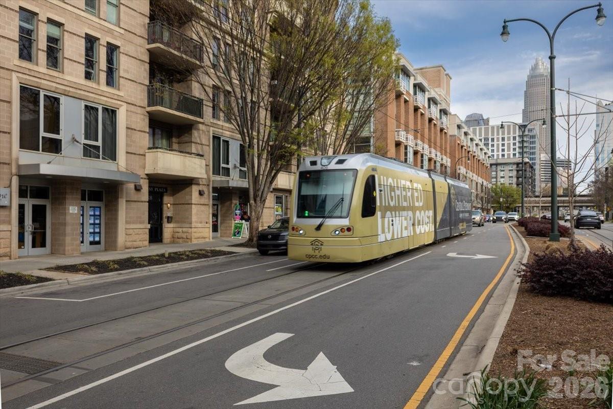 Welcome to Gateway Plaza — Homeownership with access to Uptown Charlotte's Living! Discover the perfect opportunity to own one of Uptown Charlotte's most sought-after addresses. This top floor, 2-bedroom, 1-bathroom condo at 718 W Trade Street puts you steps from everything that makes Charlotte one of the South's most vibrant cities. Inside, the open layout flows naturally from the kitchen through the dining area and into the living room, anchored by a cozy gas fireplace. The kitchen features granite countertops, stainless steel appliances including a dishwasher and refrigerator, a breakfast bar ideal for casual dining, and a generous pantry and space for added storage. The primary bedroom offers a large walk-in closet, and the full bathroom is accessible both from the bedroom and the living area, and features double vanities. Classic plantation shutters in the bedrooms add charm and light control throughout. A stackable washer and dryer convey with the unit. Step outside to your top floor balcony to relax and enjoy the views. Gateway Plaza's resort-style amenities create an experience and provide additional spaces to entertain and connect with neighbors. Enjoy a picturesque community pool or sit at the surrounding tables to work or enjoy the outdoors under the trees. Enjoy a rooftop terrace with stunning Uptown skyline views, a clubhouse, gas grills, and fire pits. Your assigned covered parking in a gated deck with a skybridge to the condos, provides peace of mind, and the building's secure access adds an extra layer of comfort. The location is unbeatable. Frazier park and dog park are less than half a mile away. You're within easy walking distance of Bank of America Stadium (Panthers), Spectrum Center (Hornets), Truist Field (Knights), the Blumenthal Performing Arts Center, Romare Bearden Park, and nearby museums and Charlotte's main library. Johnson & Wales University is just steps away. Hop on the Gold Line Streetcar right out front, or jump on I-77 for effortless regional access. Dining, nightlife, greenways, and Charlotte's best neighborhoods are all at your doorstep. Enjoy the luxury of driving less to get to your favorite places.This condo helps you feel at home while providing easy access to the best of living. Whether you're an urban professional, investor, or first-time buyer, this is your chance to own in the heart of it all. Don't miss this gateway to Uptown Charlotte living!