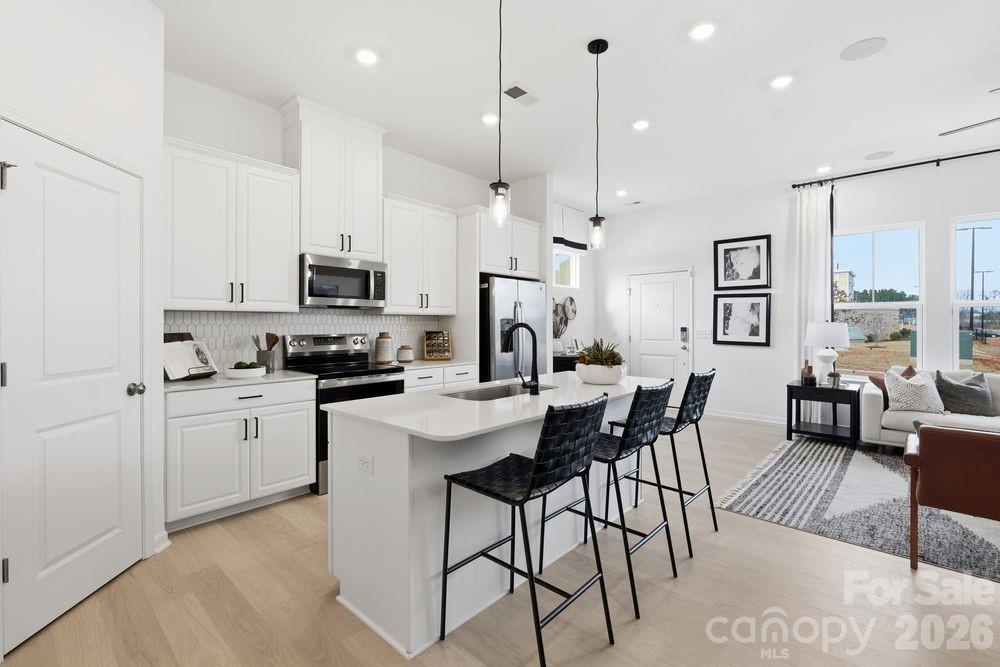What's Special: Gourmet Kitchen | Dedicated Study | Covered Patio | Premium Location. New Construction - April Completion! Built by America's Most Trusted Home Builder. Welcome to the Avon at 5557 Wolfpack Alley in Terraces at the Exchange! This charming new end-unit townhome opens with a great room that flows easily into the casual dining area and gourmet kitchen with a center island and walk-in pantry. Just across the hall, the covered patio sits near a convenient powder room and the rear two-car garage entry. Upstairs brings a thoughtful layout with a tech center and dedicated study at the top of the stairs. Two secondary bedrooms with walk-in closets share a full bathroom, while the primary suite offers an en-suite bath and walk-in closet. The laundry room is also upstairs for everyday convenience. Residents will love walking to the Exchange, a new retail hub featuring Costco, Lowe’s Foods, Club Pilates, and more. With easy access to Hwy 521, I-485, I-77, and I-85, the area is growing fast. Nearby Swig and CrossRidge offer Target and a YMCA, while the Promenade at Carolina Reserve adds T.J. Maxx, HomeGoods, Starbucks, and more. Plus, Charlotte Douglas Airport is just 30 miles away. Additional Highlights Include: Gourmet kitchen, study in place of loft, and extended laminate flooring at great room. Photos are for representative purposes only. MLS#4359866