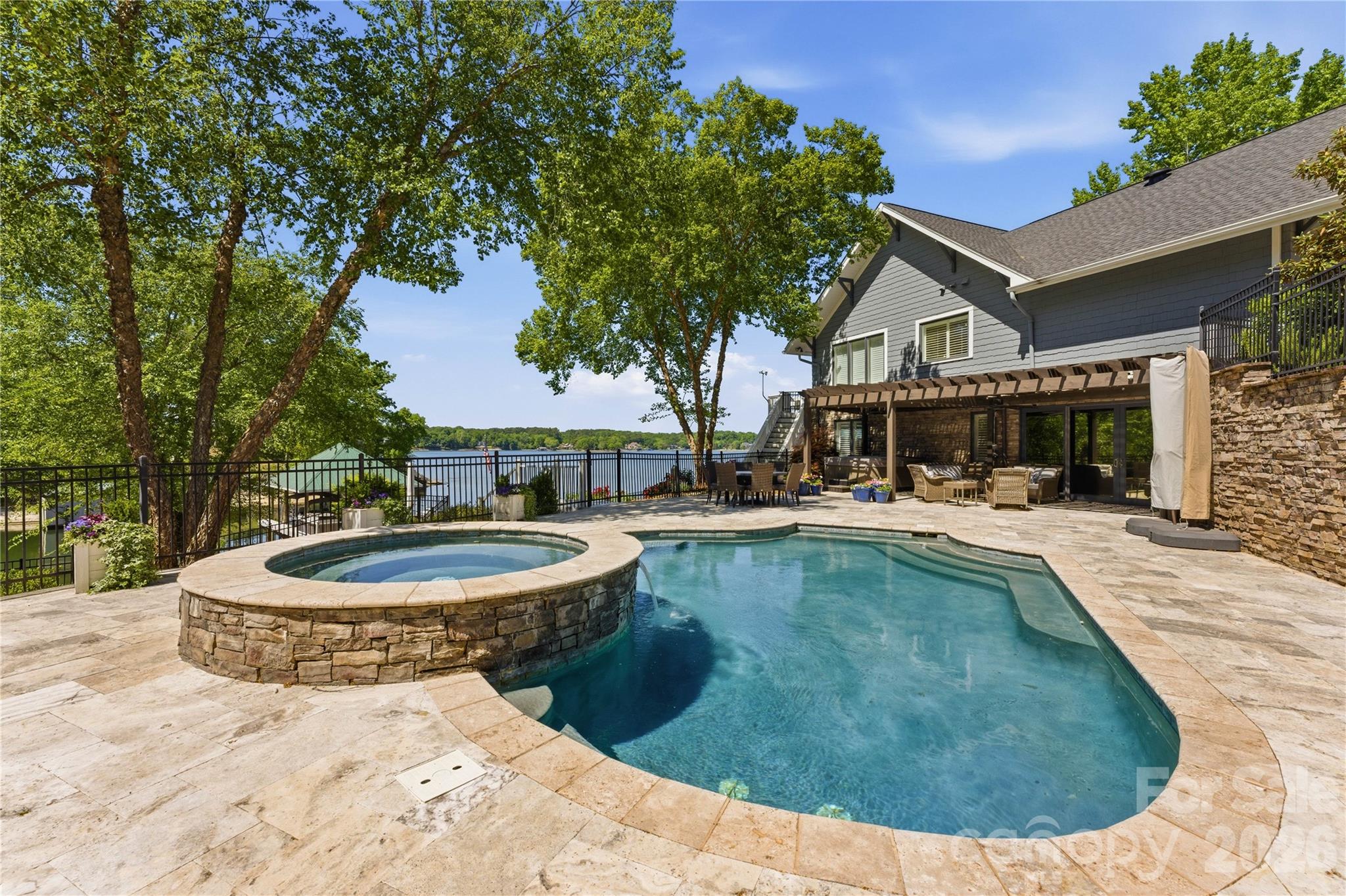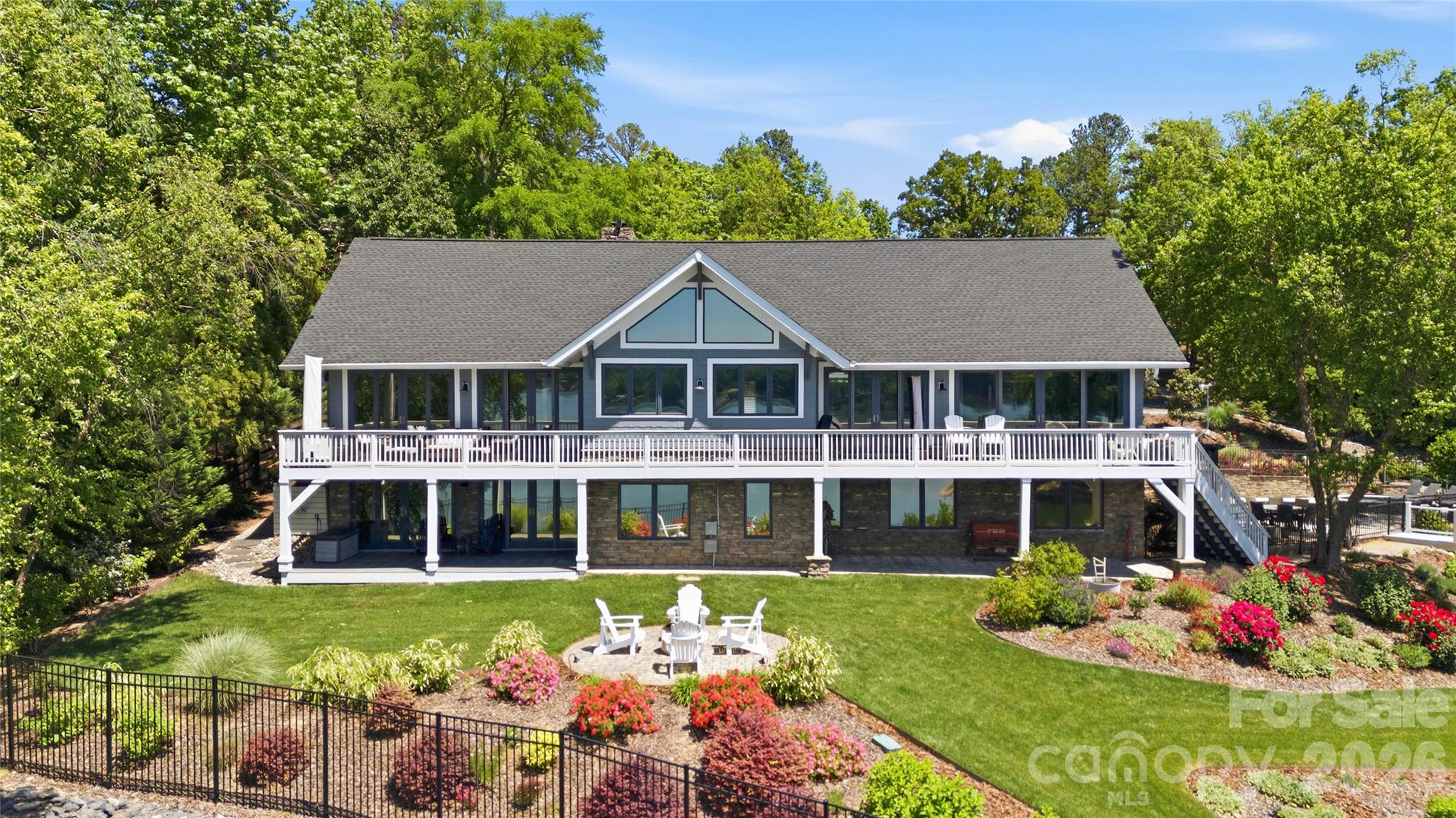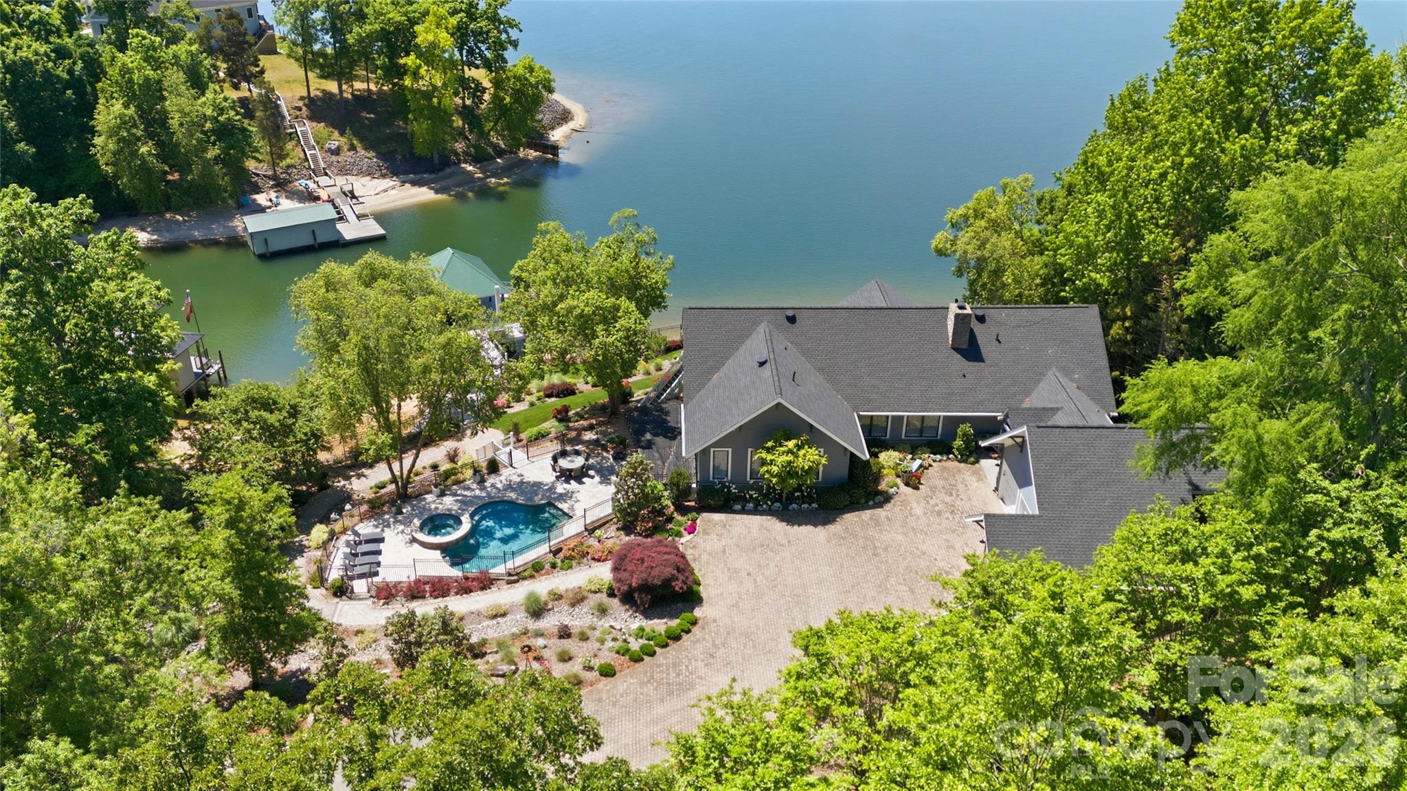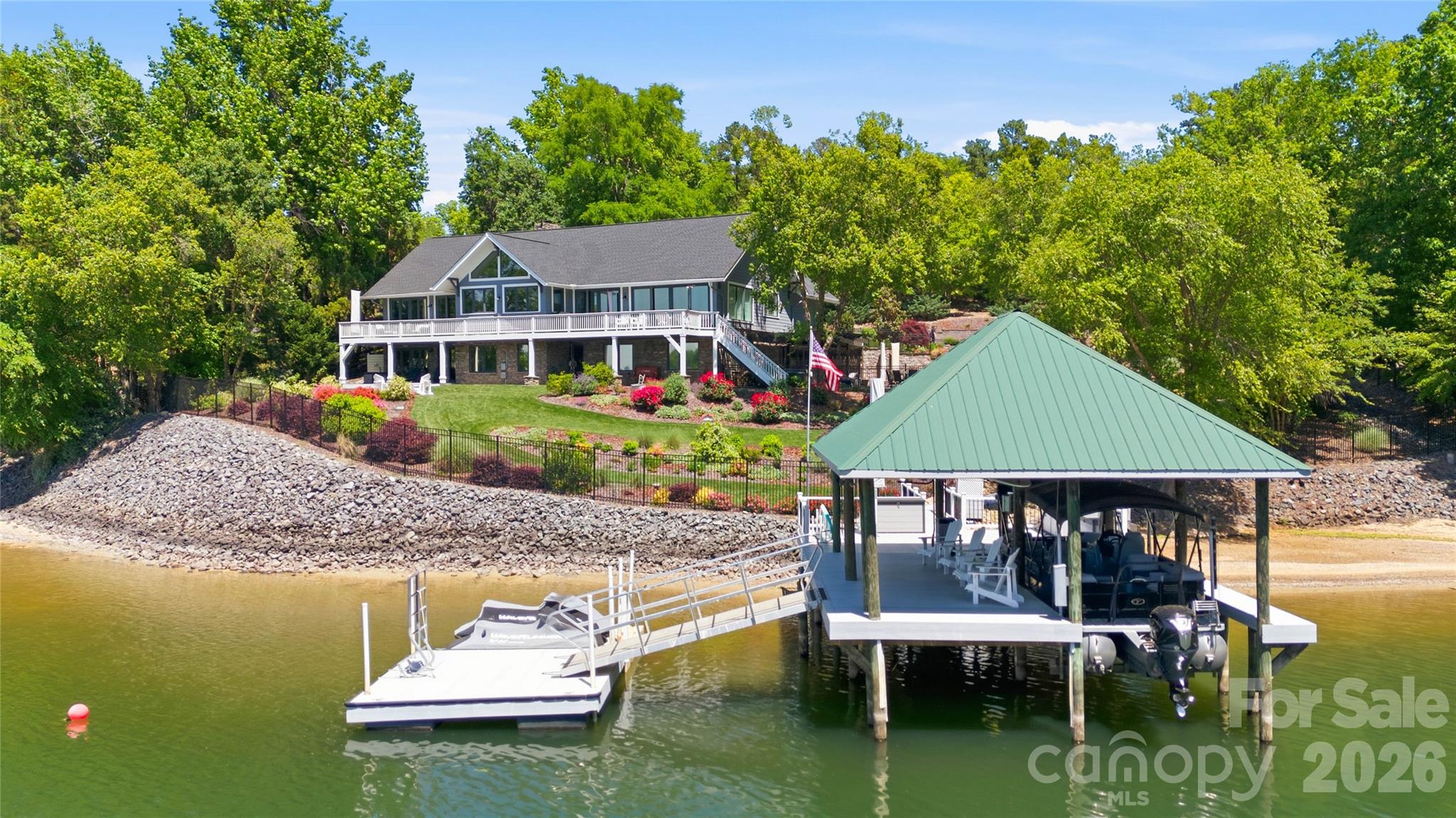 An exceptional gated waterfront estate set on a private 1.35-acre homesite along Lake Wylie’s sought-after main channel, showcasing stunning sunset views and an atmosphere of refined, effortless luxury. Thoughtfully designed with timeless craftsmanship and modern sophistication, this residence captures panoramic water views from nearly every room. The main living spaces are both grand and inviting, defined by soaring vaulted ceilings, rich architectural detailing, and seamless indoor-outdoor flow. A beautifully appointed great room with custom built-ins and fireplace flows seamlessly into the chef’s kitchen, newly updated in 2026—an elegant yet highly functional space featuring marble countertops, an oversized island, walk-in pantry, and a full suite of professional-grade appliances, including a Wolf gas cooktop, steam oven, and Thermador refrigerator. Refined entertaining continues in the formal living and dining rooms, complete with a wet bar—ideal for intimate gatherings or elevated hosting. The primary suite serves as a private sanctuary, offering dual custom closets, a spa-caliber bath with heated floors, and the convenience of an adjoining laundry. The lower level is designed for both relaxation and hosting, featuring an expansive recreation room, a warm and inviting den with wet bar and direct access to the pool and patio. Three additional bedrooms each with an ensuite bathroom are elegantly appointed for comfort and privacy. There is even a secondary laundry space for guests and pool towels. A spacious three car garage also features tons of storage above. Outdoors, the property transforms into a true resort-style retreat. A sprawling composite deck, covered terrace, and meticulously landscaped grounds surround a saltwater pool and spa, creating an atmosphere of serene leisure. The private covered dock with boat lift provides immediate access to the lake, completing this rare offering. A distinguished waterfront residence just moments from Charlotte, delivering an unparalleled blend of privacy, design, and lakefront living.