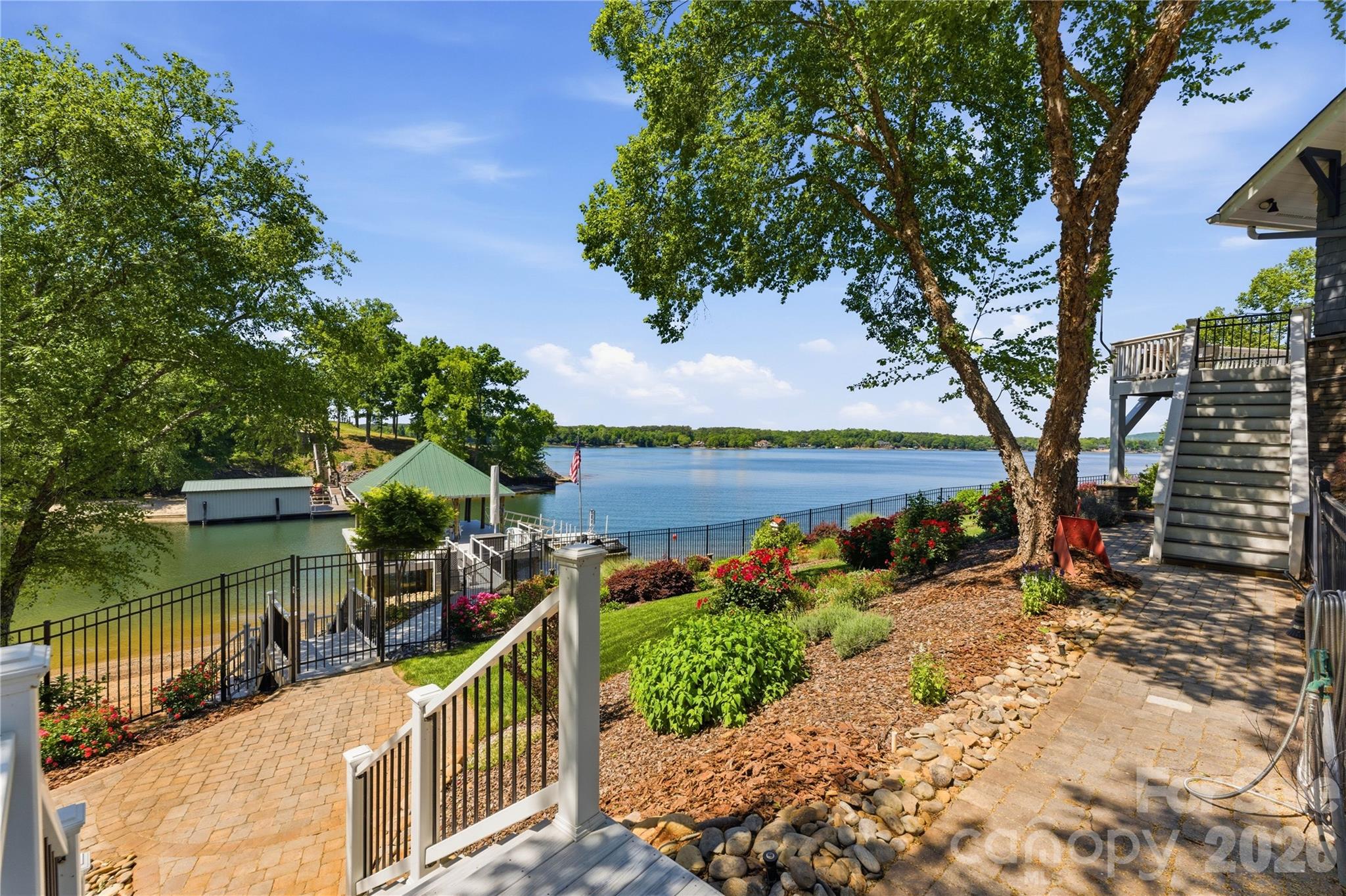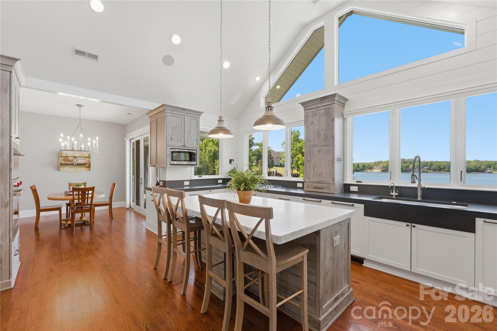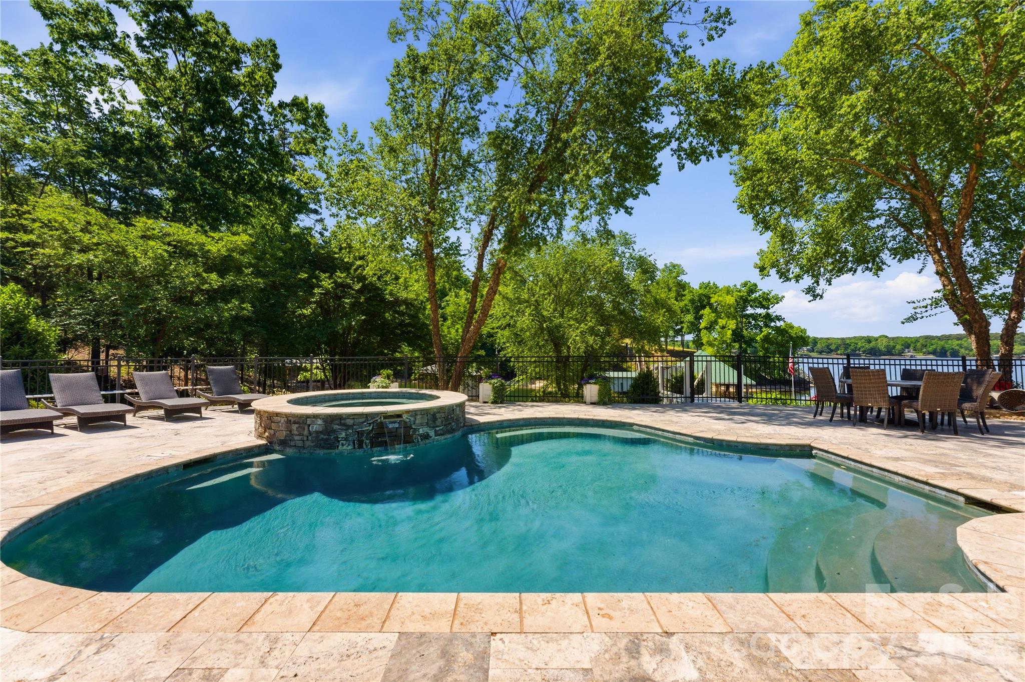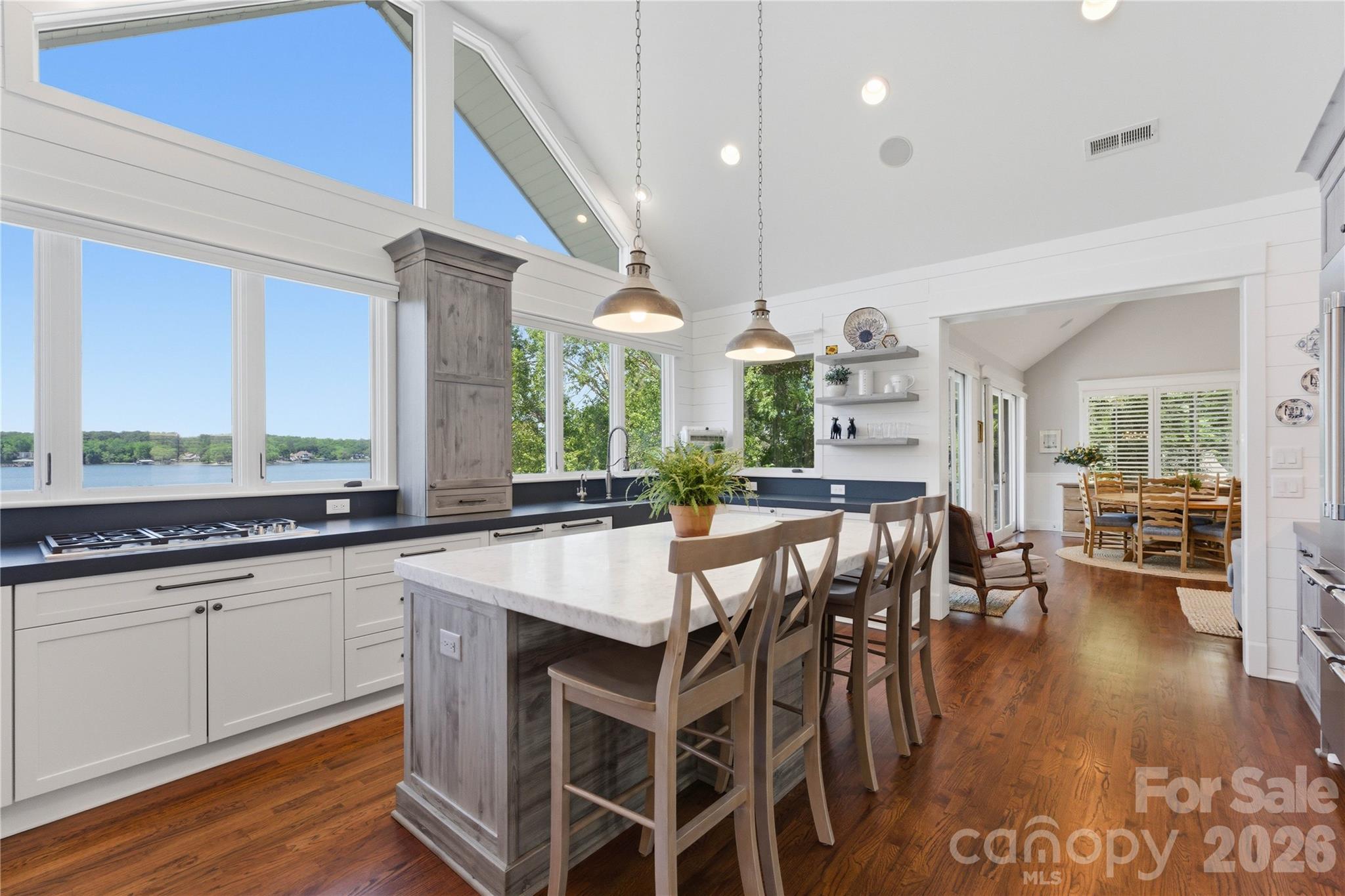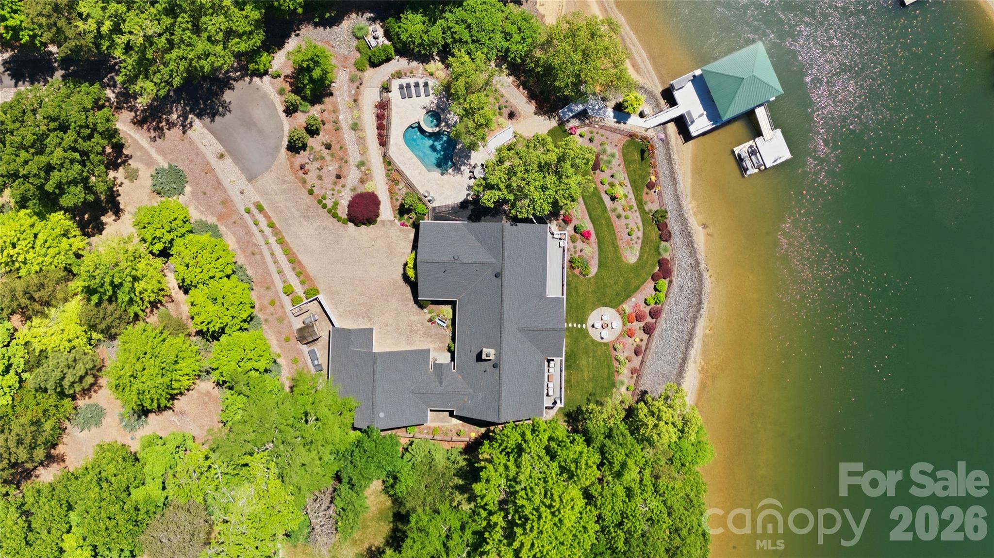 An exceptional gated waterfront estate set on a private 1.35-acre homesite along Lake Wylie’s sought-after main channel, showcasing stunning sunset views and an atmosphere of refined, effortless luxury. Thoughtfully designed with timeless craftsmanship and modern sophistication, this residence captures panoramic water views from nearly every room. The main living spaces are both grand and inviting, defined by soaring vaulted ceilings, rich architectural detailing, and seamless indoor-outdoor flow. A beautifully appointed great room with custom built-ins and fireplace flows seamlessly into the chef’s kitchen, newly updated in 2026—an elegant yet highly functional space featuring marble countertops, an oversized island, walk-in pantry, and a full suite of professional-grade appliances, including a Wolf gas cooktop, steam oven, and Thermador refrigerator. Refined entertaining continues in the formal living and dining rooms, complete with a wet bar—ideal for intimate gatherings or elevated hosting. The primary suite serves as a private sanctuary, offering dual custom closets, a spa-caliber bath with heated floors, and the convenience of an adjoining laundry. The lower level is designed for both relaxation and hosting, featuring an expansive recreation room, a warm and inviting den with wet bar and direct access to the pool and patio. Three additional bedrooms each with an ensuite bathroom are elegantly appointed for comfort and privacy. There is even a secondary laundry space for guests and pool towels. A spacious three car garage also features tons of storage above. Outdoors, the property transforms into a true resort-style retreat. A sprawling composite deck, covered terrace, and meticulously landscaped grounds surround a saltwater pool and spa, creating an atmosphere of serene leisure. The private covered dock with boat lift provides immediate access to the lake, completing this rare offering. A distinguished waterfront residence just moments from Charlotte, delivering an unparalleled blend of privacy, design, and lakefront living.