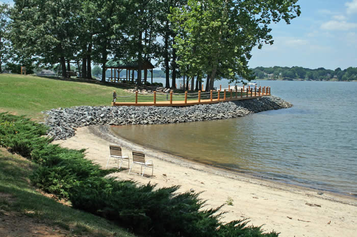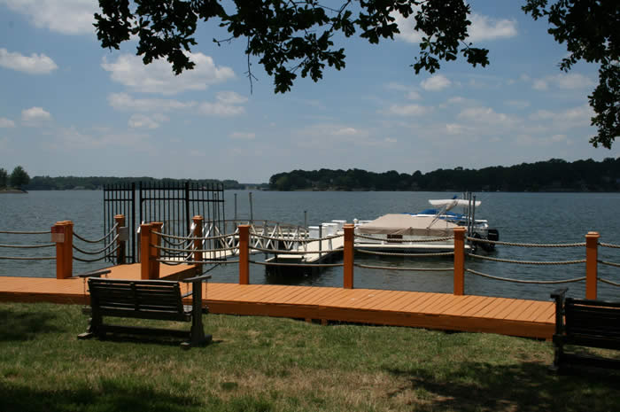A lakeside boardwalk leads to community boat slips, a convenient access to boating on Lake Wylie.